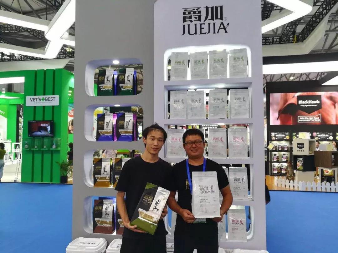 華興寵物食品有限公司的展位N1H51前,迎接著一批批來自全球各地的客戶,熱鬧非凡。