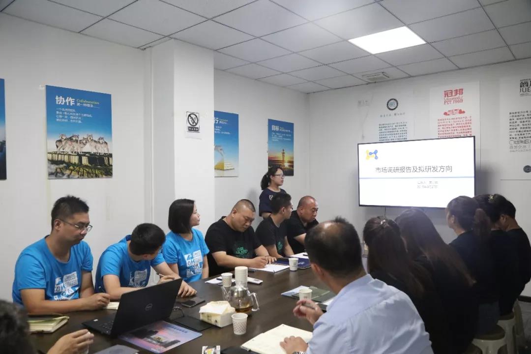 董事長對公司在北京的研發中心工作表示滿意,隨后聽取了華興營養研發中心研發人員的專業介紹以及市場調查匯報。